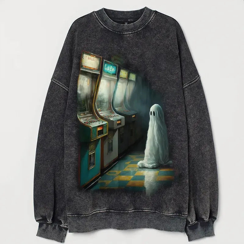 3D Printed Sports Casual Round Neck Drop-shoulder Sweater
