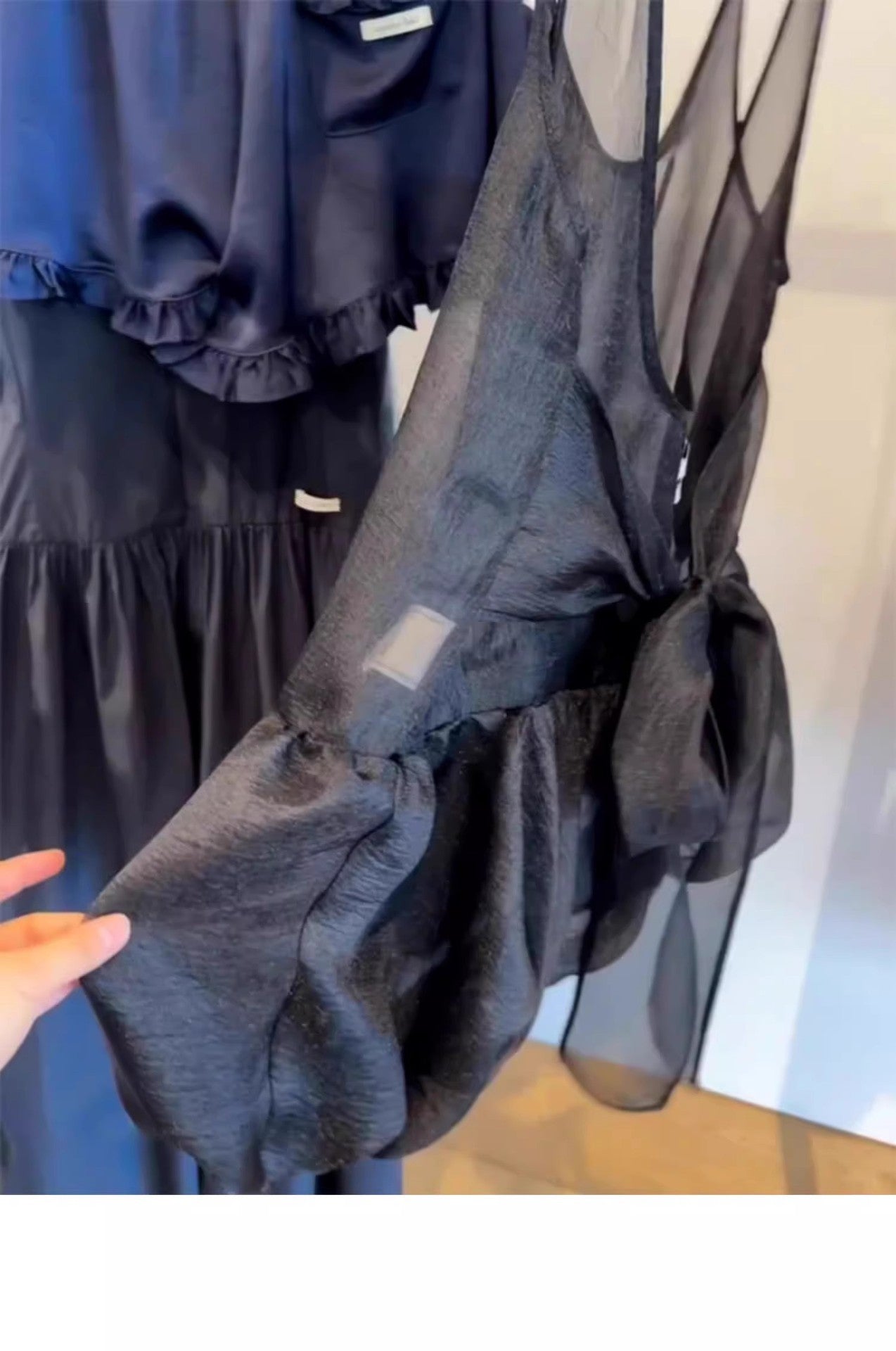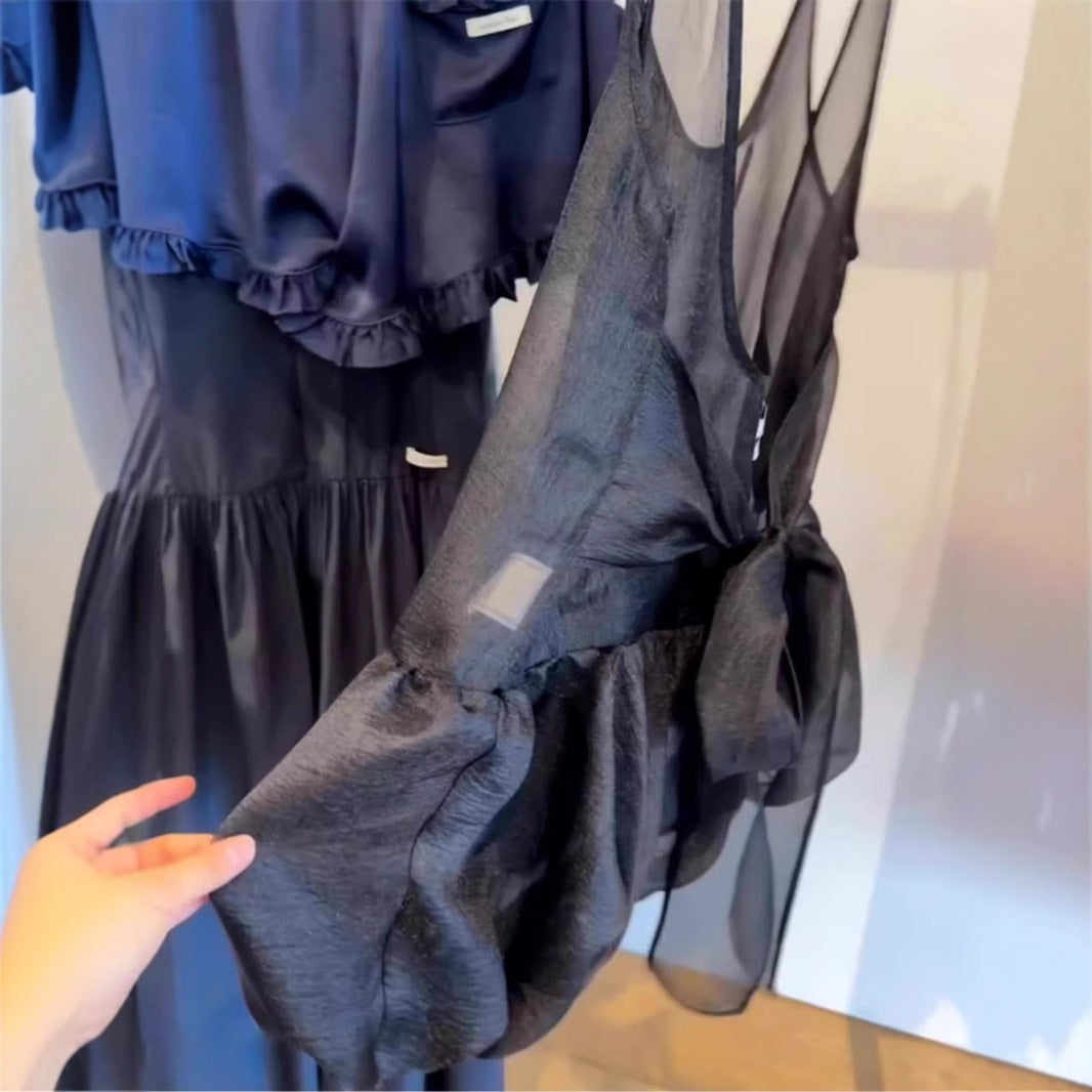 Beautiful Camisole Top Black U-collar Mesh Bud Bandage Dress Shirt Spring