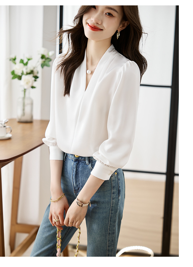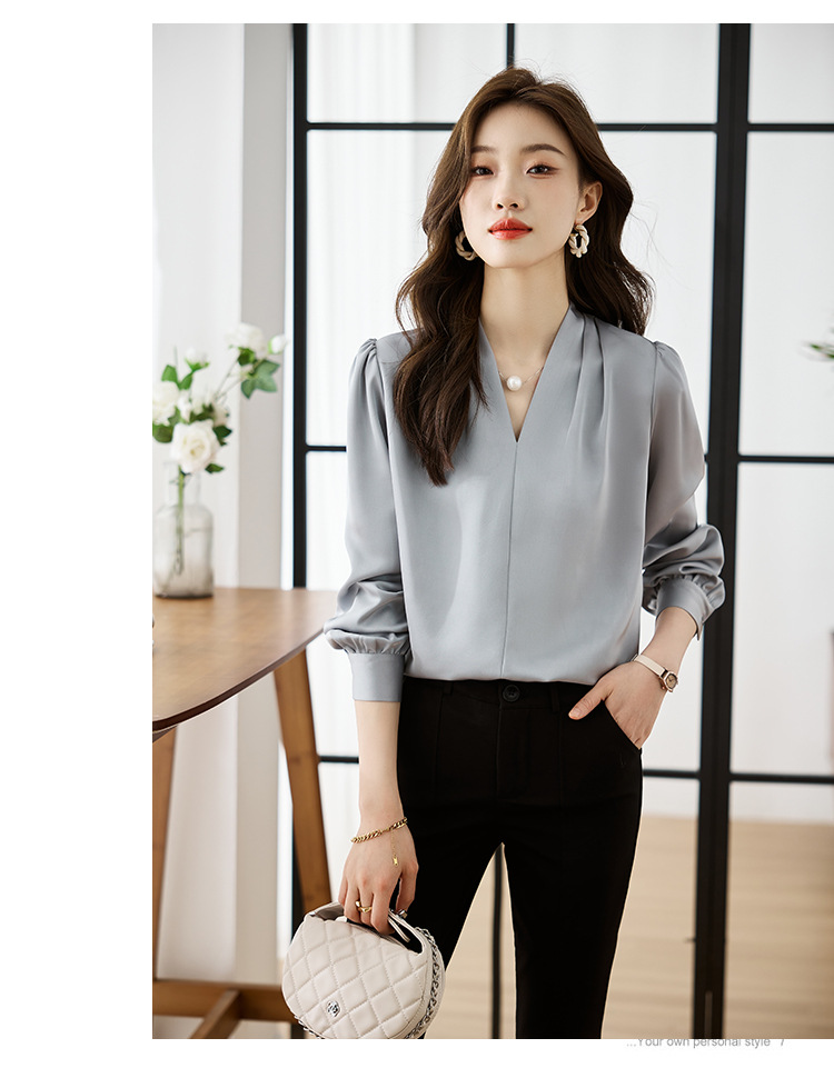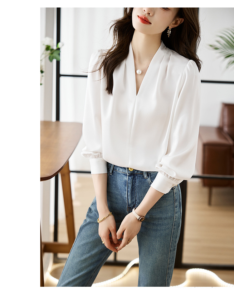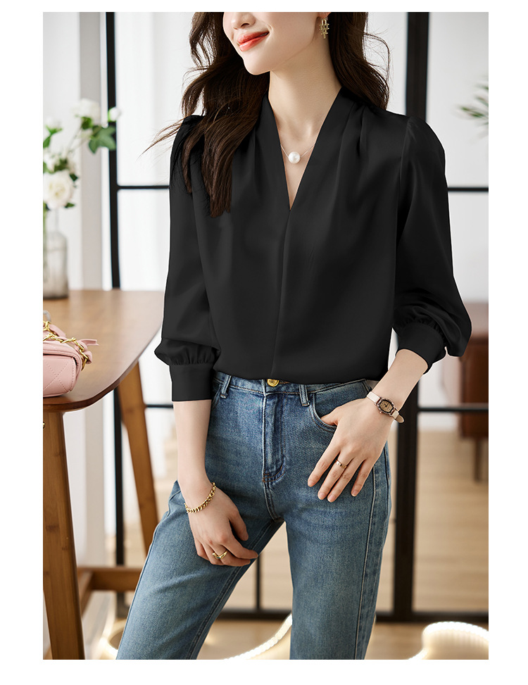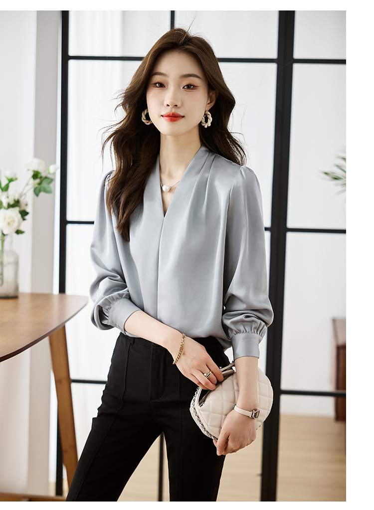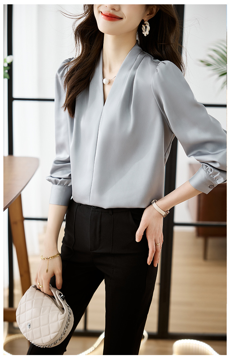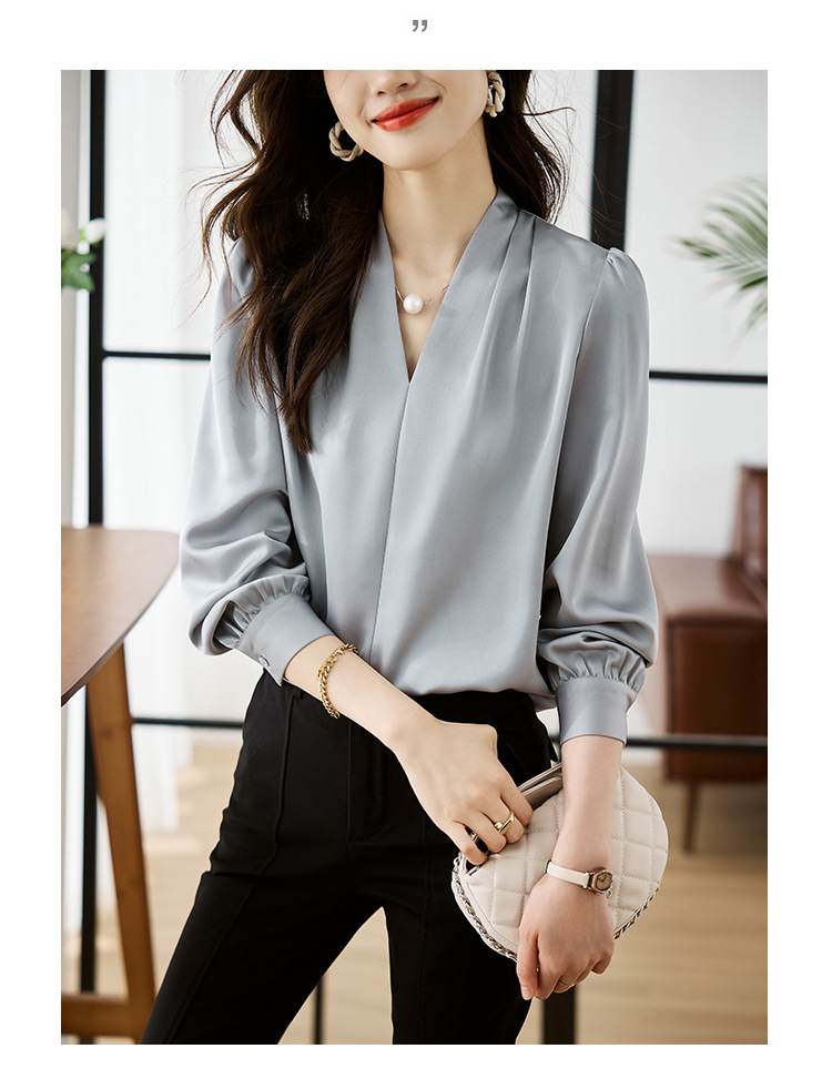 V-neck Lightly Mature Commuter Satin Chiffon Blouse Top