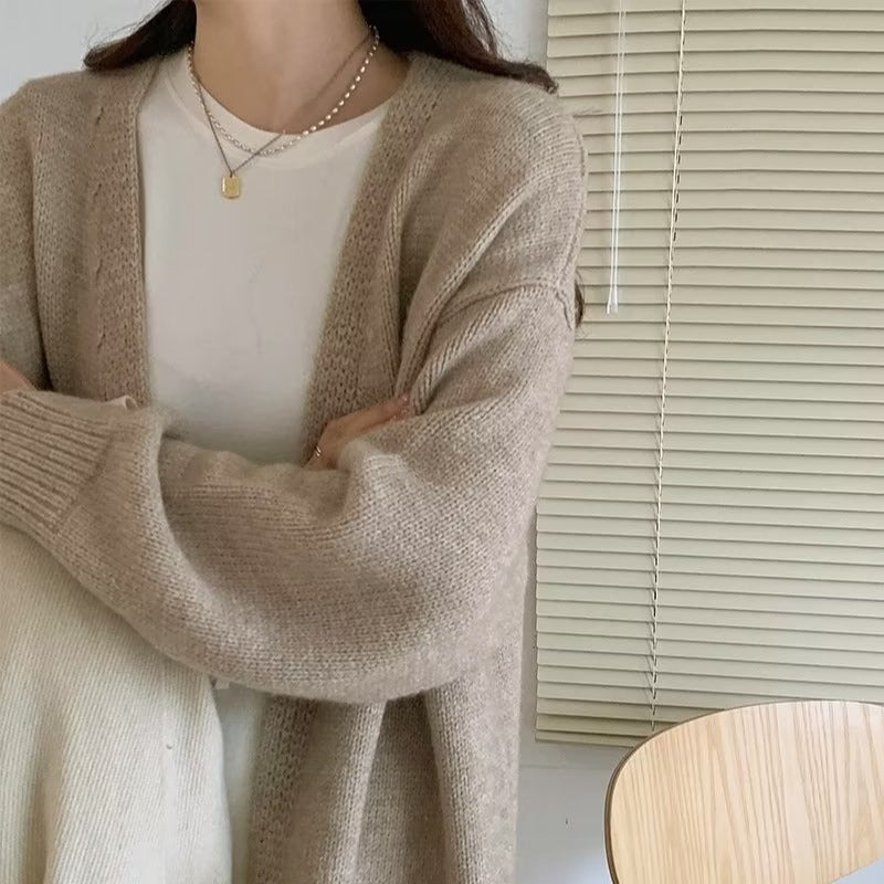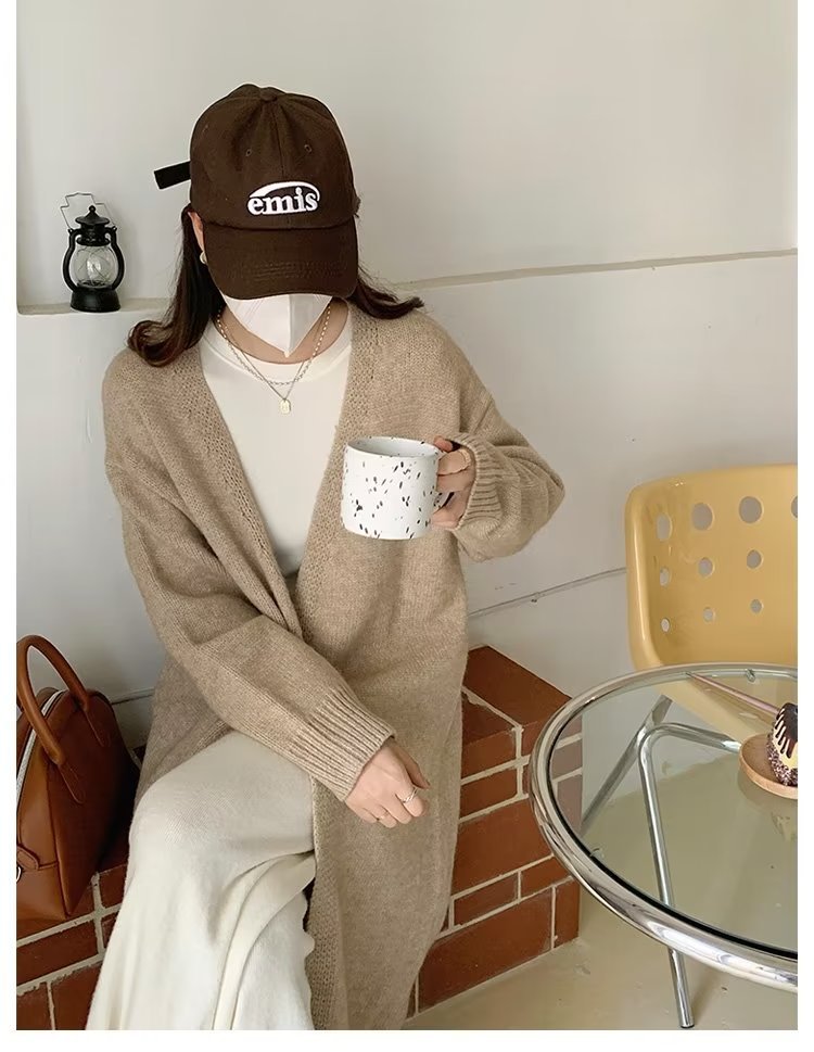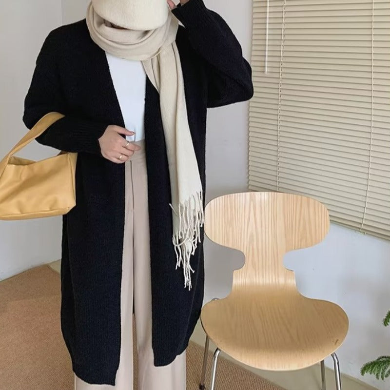 Women's Solid Color Autumn Mid-length Knitted Cardigan Sweater Coat Top