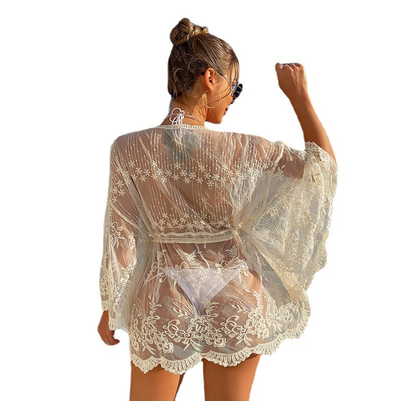 Women's Swimsuit Blouse Lace Pullover Drawstring