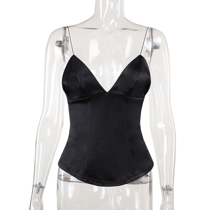 Women's V-neck Strap Cinched Waist Waistcoat Hot Girl T-shirt
